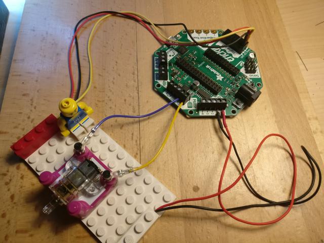 It's also got a USB port and an on-board NeoPixel, plus headers to plug in a Feather board.