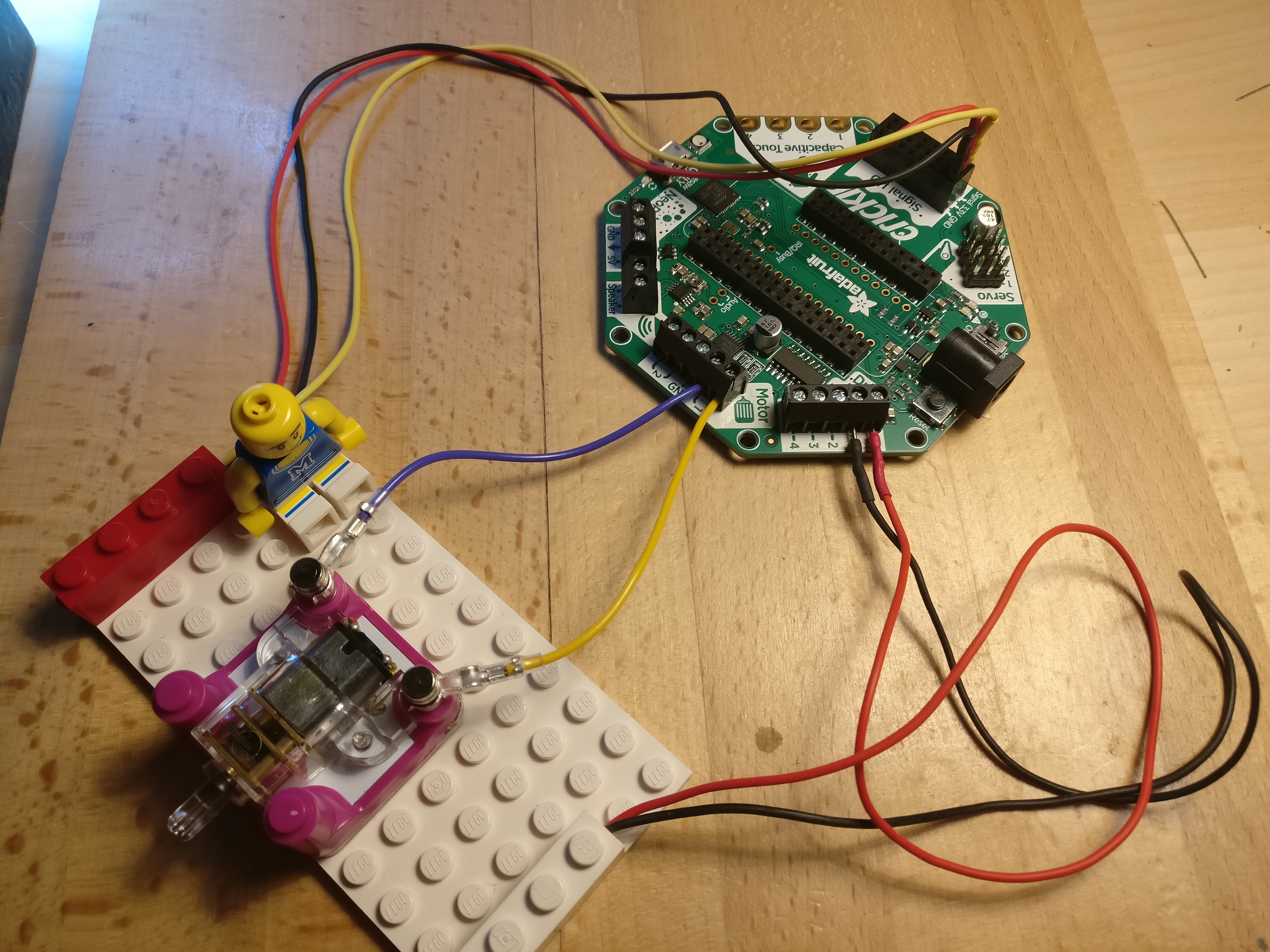 The TI DRV8833 motor controller chip on the Crickit has two pins per motor -- you set one pin to ground and drive the other with a PWM signal, which pin you PWM selects the direction of the motor. This doesn't directly map to how I expected motor controllers to work in Snek. Snek expects to have one pin control direction and the other control speed.