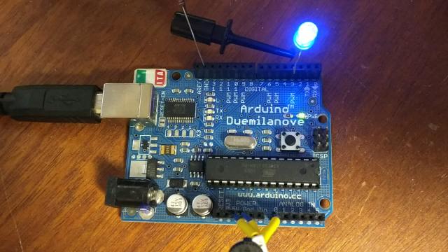 This implements a dimmer — reading from an analog input and mirroring that value to a pin.