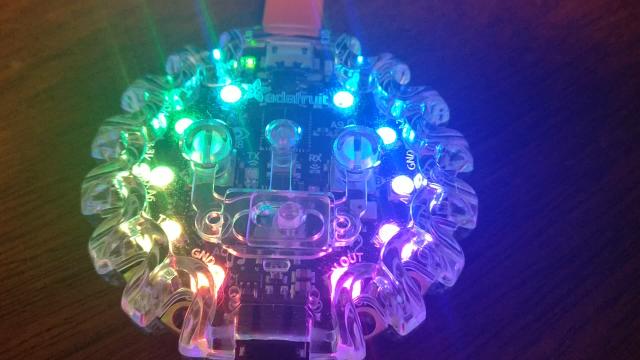 That make the first Neopixel a not-quite-blinding red. Now we can turn it green with: